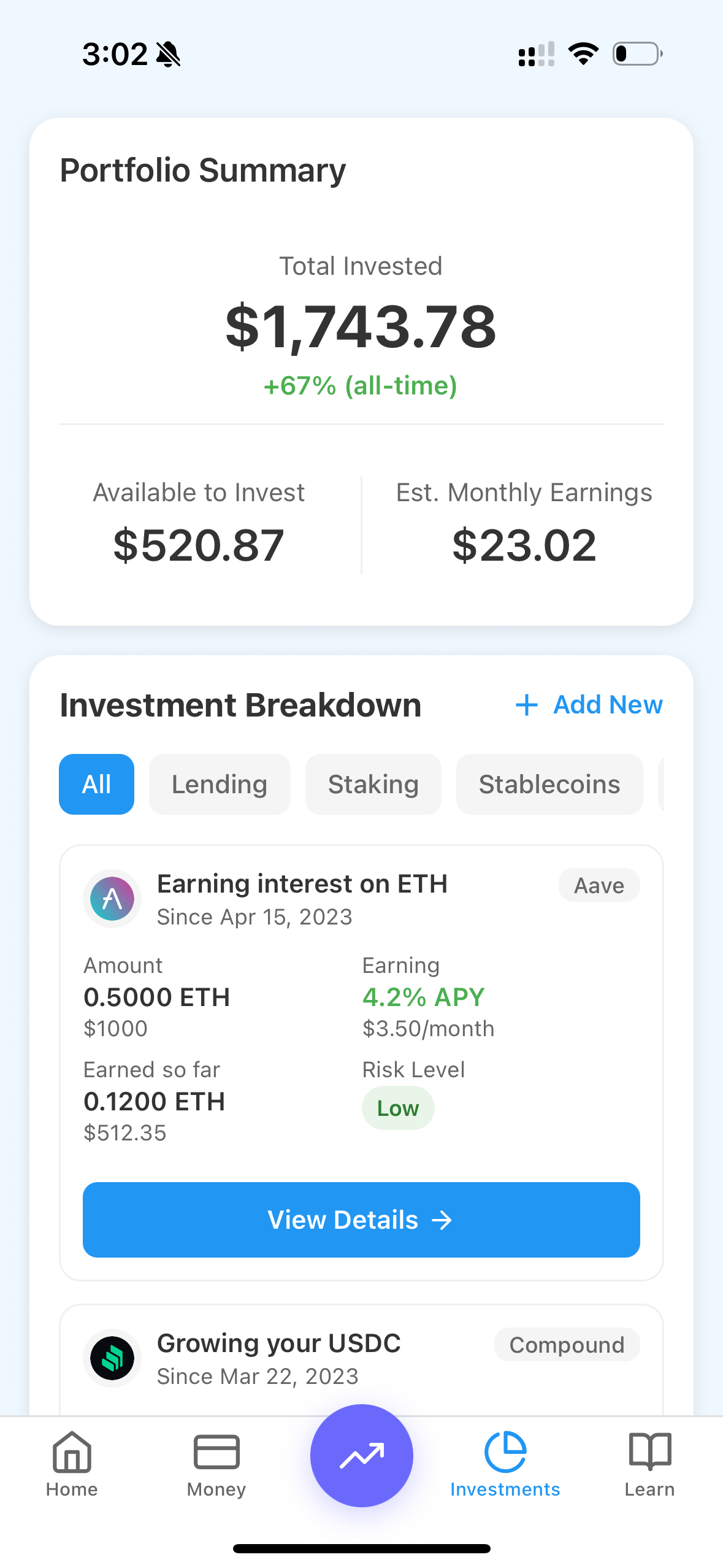It feels like a personal finance app but for DeFi. Clean, simple, and without overwhelming charts.